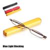 Brillen Federgelenk Metallrahmen Lesebrillen mit tragbarem Stiftclip-Etui Mini-Lesebrillen Blaulichtblockierend