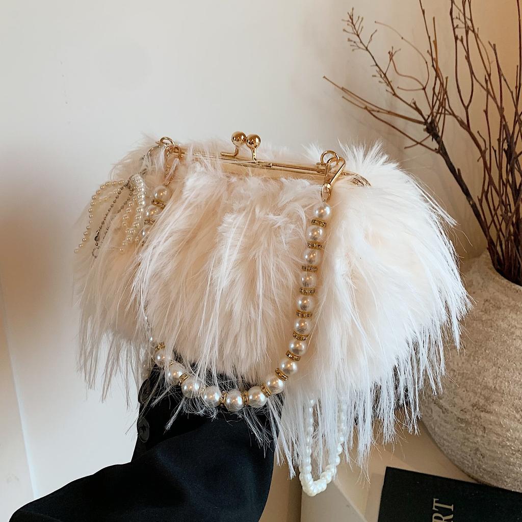Retro Plüsch Damen Tasche, Fransen-Perlenkette, Flauschige Tasche, Europäisch und Amerikanisch Fee Wind Umhängetasche