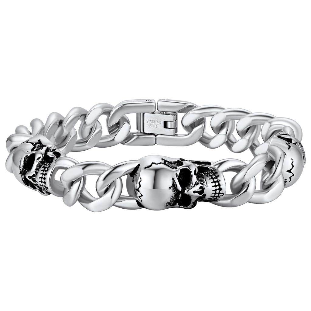 Totenkopf Totenkopf Armband Beliebte Edelstahl Silber Dicke 11mm Länge 21cm [ChainsPro] Herren Leave-on