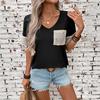 Damen Sommer Neu Lässig Schwarz und Weiß Kontrast Pailletten Kurzarm Top