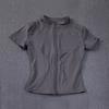 Sommer Hohe Qualität Taillenformende Trainings-Tops Damen Schnelltrocknend Enganliegend Stehkragen Durchgehender Reißverschluss Kurze Ärmel Yoga-Shirts