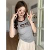 Damen Personalisierbares T-Shirt mit Amerikanischem Buchstabenaufdruck Sommer Kurzarm Student Slim Top