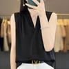 VEZFAA Damenmode Casual Sommer Frühling Einfarbig Druck Ärmellose V-Ausschnitt Blusen & Hemden