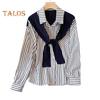 Umarmen Sie den Trend mit diesem Hemd im regulären Stil mit vertikalen Streifen, das Ihrer Garderobe einen Hauch von Einzigartigkeit verleiht. Das falsche zweiteilige Design mit einem festen Schal auf der Rückseite hebt Sie in modischen Umgebungen hervor und setzt überall ein starkes Statement.
