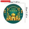 2D Flach 20cm 1Stück Eid Mubarak prächtige Moschee & Laternen Muster Gute Qualität Runder Holzanhänger, Grüner Retro verzierter Stil Eid Dekoration zum Feiern