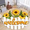 2D flach 20*20cm 1 Stück Willkommen Helles Gelb Sonnenblumenlogo rund Dekorteller mit Vintage-Rustikalem Stil, Geeignet für Zuhause, Garage, Café, Außen/Innen