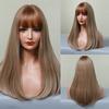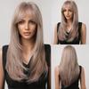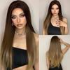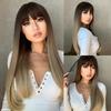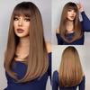 HENRY MARGU Lange, glatte Kunsthaarperücken, dunkelschwarzbraunes Ombré-Haar mit Pony für schwarze Frauen, tägliche Cosplay-Perücken, hitzebeständig