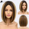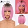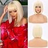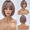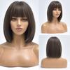 Braune gerade kurze Bob natürliche tägliche Haar synthetische Perücken für weiße Frauen mit Pony hitzebeständige Cosplay weibliche Faserperücke