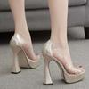 Sexy Peep-Toe-Plateau-Sandalen mit transparentem PVC-Strass, Slip-on-Absatz, 13 cm dicker Absatz, Party- und Hochzeitsschuh für Damen
