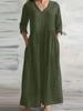 Baumwolle Leinen Lose Lange Kleider Für Frauen 2025 Frühling Herbst Neue Casual Halbarm V-ausschnitt Maxi Kleid Einfache Stil Dame Vestido