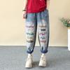 DIMANAF 2025 Übergröße Sommer Harem Damen Stickerei Jeans Lässig Hohe Taille Elastisch Basic Einfarbig Weite Hose
