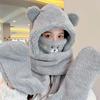 Warm Bear Ear Beanies Cap Solid Color Ski Hat Sweet Scarf Gloves Set Women