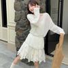 Sommer Sexy Hohlgestricktes Netz-Pullover Schräger Ausschnitt Strand-T-Shirt Damen Strickpullover Durchsichtig Lässig Locker Langärmelig Tops