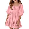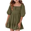 Summer Children's Ruffled Square Collar Lace-up Fashion Dress For Girls