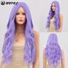 Synthetische Perücke für Frau, blau gefärbt, Ombre, langer Körper, Wasserwelle, Cosplay-Party, Lolita, 28 Zoll, hitzebeständige Nutural-Perücke