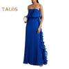 Dieses elegante Damenkleid ist aus weichem und atmungsaktivem Polyestergewebe gefertigt und sorgt für eine leichte und bequeme Passform. Das lange Design strahlt einen lässigen und dennoch schicken Stil aus, perfekt für diejenigen, die sowohl Komfort als auch Individualität schätzen. Mit einem schmeichelhaften Wickelmieder, einem schulterfreien Ausschnitt und einer taillenbetonten Silhouette betont dieses Kleid Ihre Figur und verleiht ihr gleichzeitig einen Hauch von Raffinesse und mühelosem Charme..