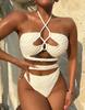 Damen Badeanzug Einfarbig Neckholder zum Binden Hohe Taille Getrennter Badeanzug Bikini Strandbekleidung Badeanzüge
