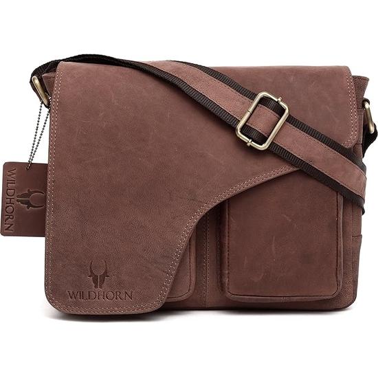 WildHornLeather 11 inch Laptop Messenger Bag for Men I Dedicated Laptop Compartment I Adjustable Strap I DIMENSION:L- 11 inch H-9.5 inch W- 3 inch