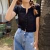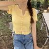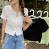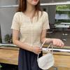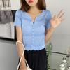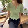 Eis Seide Strickjacke Damenbekleidung Sommer Neu Hohl V-Ausschnitt Schlankmachend Kurzarm Kurzes T-Shirt Oberteil