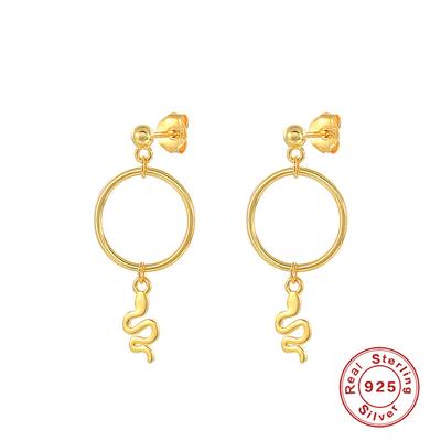 Simple S925 Sterling Silver Personalized Fun Snake Stud Earrings, Street Talent Cool Hip-Hop Style Rear Hanging Earrings