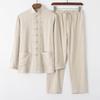 Dieser elegante Tang-Anzug mit langen Ärmeln wurde speziell für Männer mittleren und höheren Alters entwickelt, die den traditionellen chinesischen Stil schätzen.. Hergestellt aus einer bequemen Baumwollmischung, bietet es ein atmungsaktives und weiches Gefühl, perfekt für den täglichen Gebrauch oder besondere Anlässe.. Das Outfit ist mit Retro-Knöpfen ausgestattet, die einen Hauch von klassischem Charme verleihen, während sein von Tai Chi inspiriertes Design Bewegungsfreiheit bietet.. Ideal für diejenigen, die eine Mischung aus kulturellem Erbe und modernem Komfort in ihrer Garderobe schätzen.