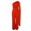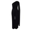 Einfarbiges One-Shoulder-OL-Bankettkleid und afrikanischer Jumpsuit für Damen