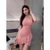 Rückenfreies Rüschenkleid für Damen im Sommer 2024 – Sexy Promi-V-Ausschnitt, kurzärmliger, enger Hüftrock