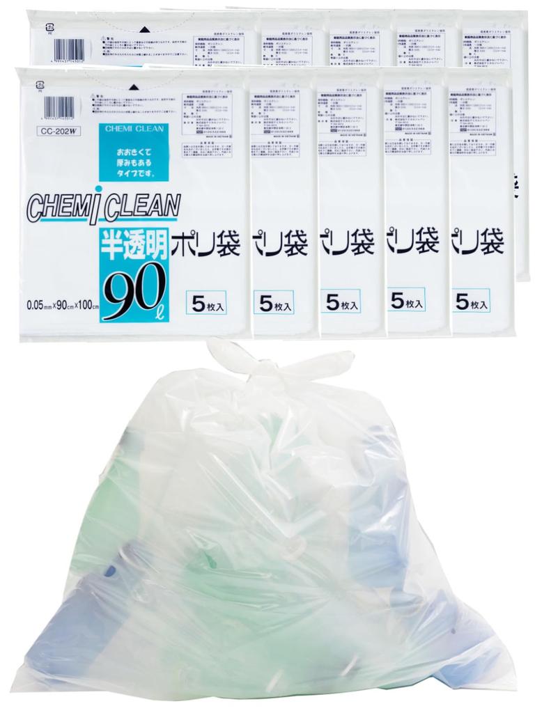 Chemical Japan Müllsack, dick und langlebig, durchscheinend, milchig weiß, 90 l, 50 Blatt, Blätter x 10, Breite 90 cm, Höhe 100 cm, Dicke Plastiktüte extra