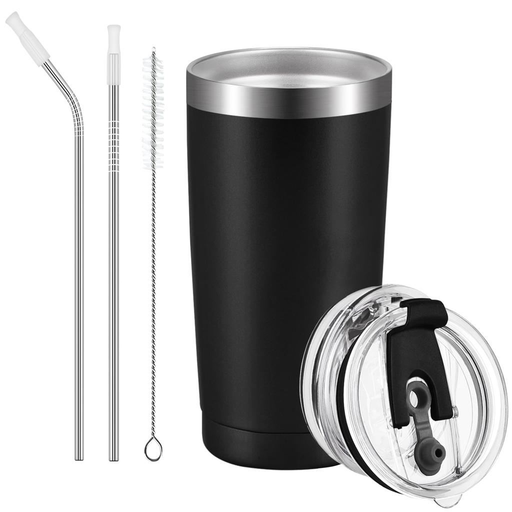 【Lieferumfang】 1 x vakuumisolierter Becher, 2 x BPA-freier Deckel, 2 x Strohhalm, 1 x Strohhalmbürste, 1 x Becherreinigungsbürste, 1 x schwarze Box