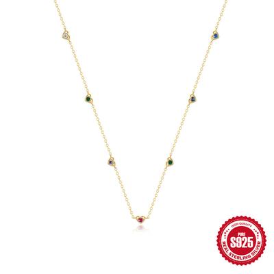 S925 Sterling Silver Temperament Single-Row Color One-Word Simple Diamond-Encrusted Women'S Necklace Collarbone Chain