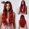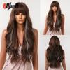 Lange gewellte schwarze Ombre-Braun-Perücken mit Pony, synthetische Naturwellen-Perücke für schwarze Frauen, hitzebeständige Kunsthaar-Cosplay-Perücke