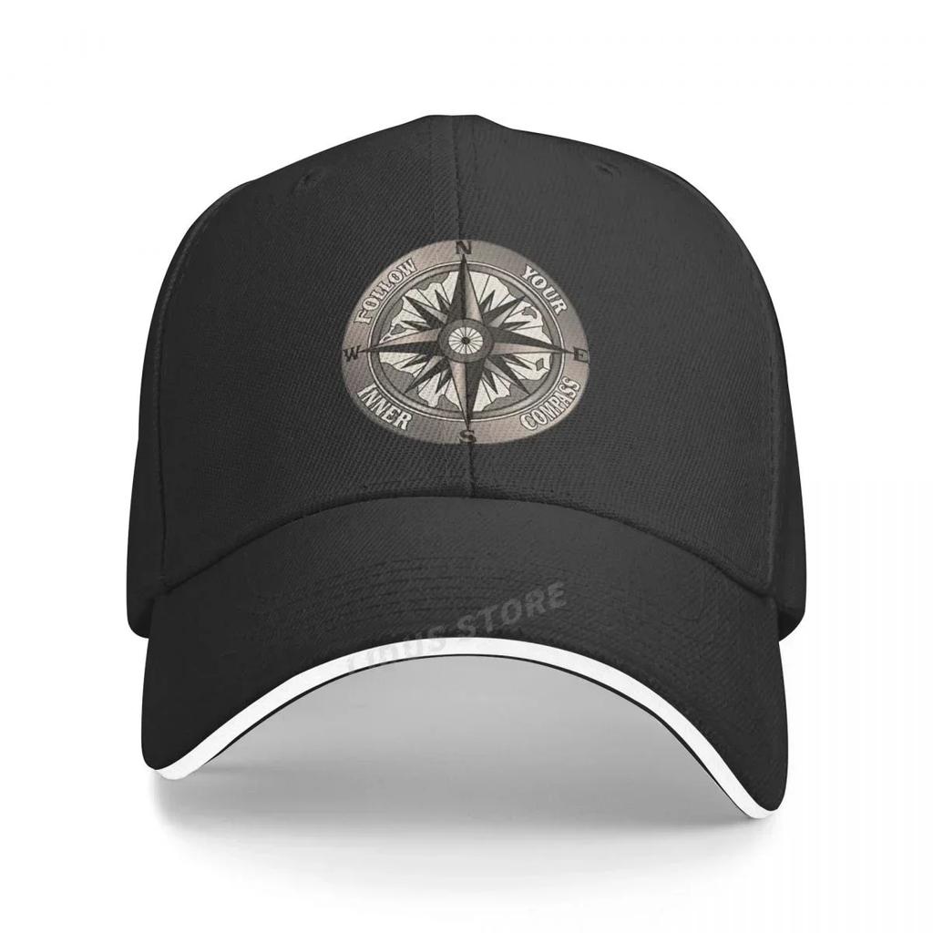 Baseballkappe mit Aufdruck „Follow Your Inner Compass“, modisch, für den Sommer, für Herren und Damen, verstellbar, mit Kompass