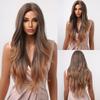 Ombre Braune lange gewellte Kunsthaar-Perücke für schwarze Frauen, Afro-Mittelteil, hitzebeständige Faser, Cosplay, Haarperücken für den täglichen Gebrauch