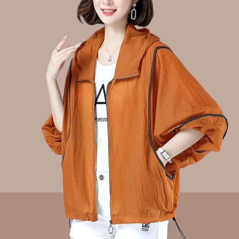 Sommer Dünne Kapuzen-Sonnenschutzkleidung Damenbekleidung Locker Langärmelig Atmungsaktiv Große Größe Oberteile Sonnenschutzkleidung
