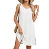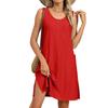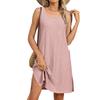 Frühling und Sommer Neues einfarbiges Rundhals-Lockeres Kleid Ärmellos mit Tasche Damenkleid