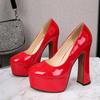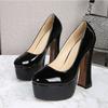 Liyke Sexy Pink Lackleder Klobige Plateau High Heels Hochzeit Bankettschuhe Frühling Herbst Runde Zehenpartie Slingback Damen Pumps