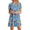 Größe S-6XL Kleid mit Blumendruck Damen Lockere Kleider Sommer für Kurzarm Mode Rundhals Freizeit Übergröße Kleid