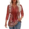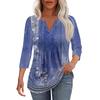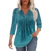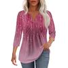 Modisches, lässiges T-Shirt mit plissiertem V-Ausschnitt und einfarbigen Siebenviertelärmeln für Damen