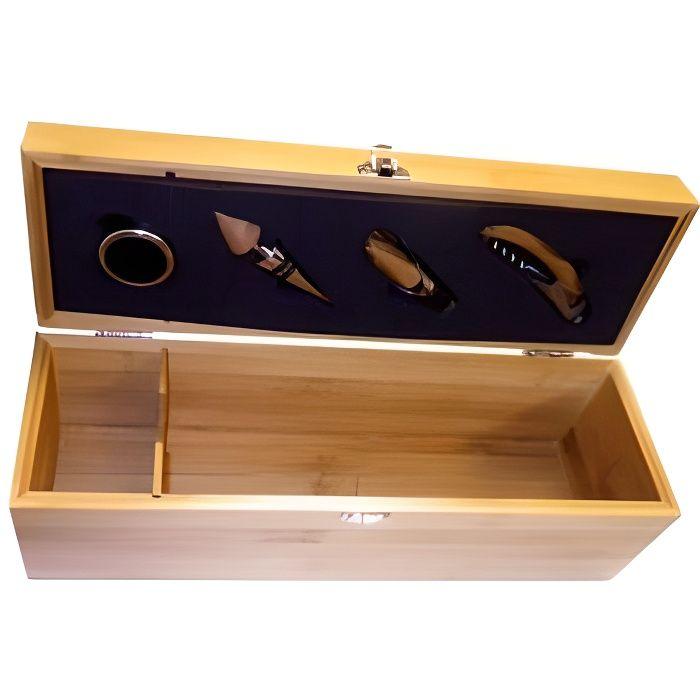 Coffret sommelier en bambou + 4 accessoires