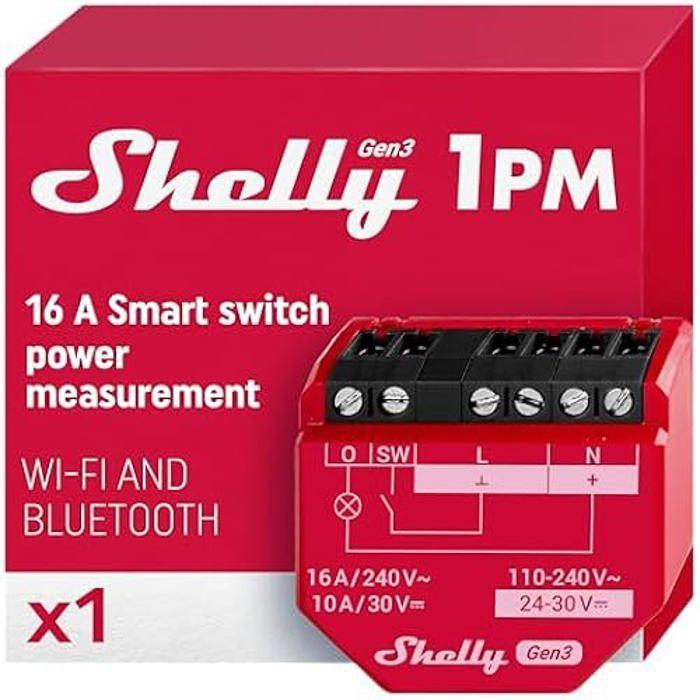 Interrupteur connecté - shelly - 1pm gen3 - wi-fi et bluetooth - 16a - compteur d'énergie intégré