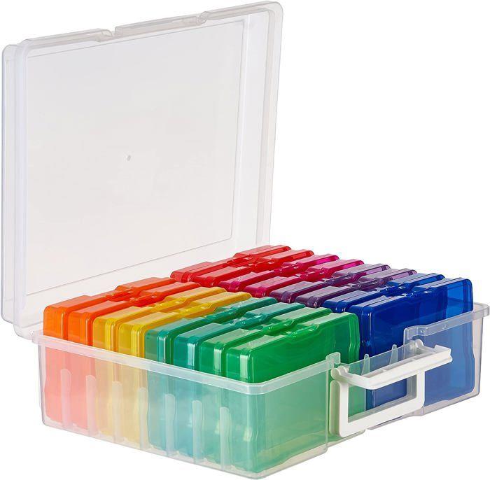 Boîte de rangement de photos - matana - 1600 photos 4r - 16 compartiments - étiquettes incluses - solide