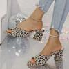 Schuhe Damen Zehenfrei Damen Hausschuhe Übergröße Moderne Hausschuhe Damen Leopard Eckige Zehenpartie Hohe Klobige Absätze Damen Sandalen