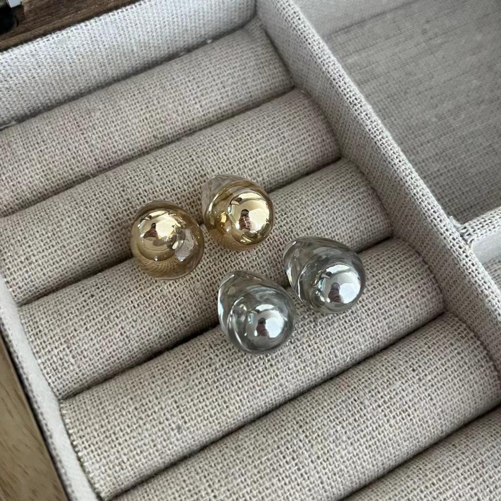 Metal Ball Earrings High-End Stud Earrings Light Luxury Design French Silver Needle Earrings Women