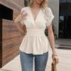 Neue Sommer-Mode Einfarbig Ausgeschnittenes Hemd Damen Sexy V-Ausschnitt Puffärmel Schnür-Tops Schicke Damen Casual Taillenbluse Streetwear