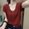 Summer Knitwear V-neck Short Sleeved T-shirt Women's Loose Women's Top