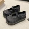 Luxuriöse Mary Janes mit bestickter, bedruckter Plattform für Damen, 2025, neuer großer runder Schnallengürtel, bequemer Schuh mit dicker Sohle