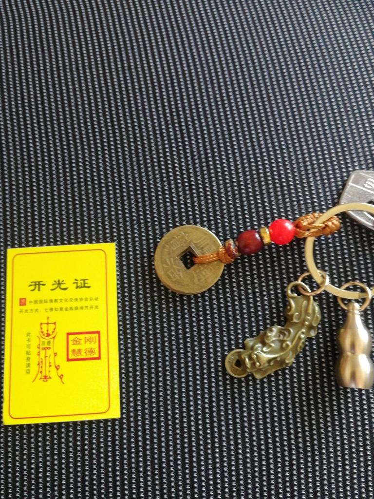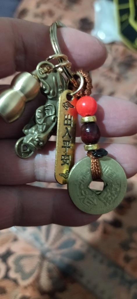 Schlüsselanhänger aus reinem Messing mit Sternzeichen Pixiu und Münzanhänger der Fünf Kaiser