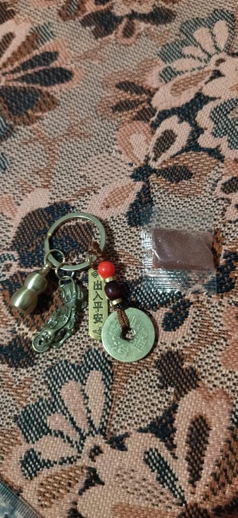 Das Tierkreiszeichen auf dem Kürbis ist kaum zu sehen. In den Kürbis wird der mitgelieferte rote Sand gefüllt. Und der "goldene Schein" vom buddhistischen Verband 😃 Das muss einfach Glück bringen!