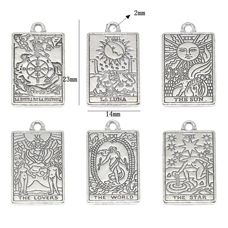 Set aus 6 Anhängern mit antikem Silber-Tarot: DIY Legierungs-Schmuckzubehör für Armbänder und Halsketten