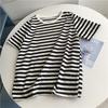 2025 Sommer Damen Gestreiftes Baumwoll-Leinen Kurzarm Rundhals Oberteil, Koreanischer Stil